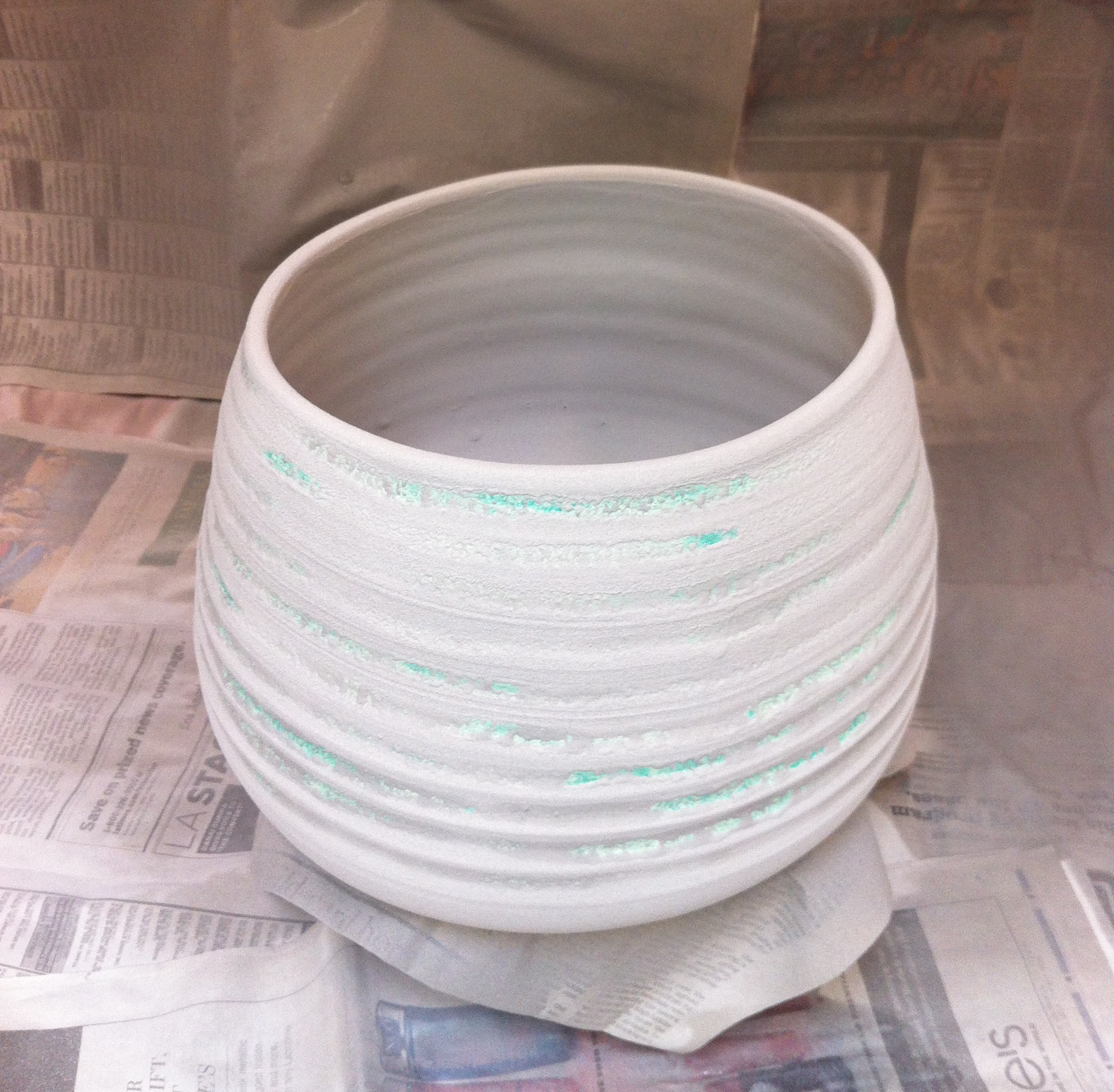 wax and matte white glaze on granite gravity bucket